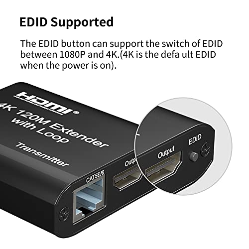 Trasmissione 4K 120 m: con un Cat5e o Cat6 è possibile sostituire il cavo HDMI, il segnale HDMI può essere esteso di 120 metri. Rispetto ai cavi dati HDMI, il prezzo è più basso, il che è la scelta accessibile della lunga trasmissione di lunga durata. E non ritarderà la trasmissione, il segnale è stabile e non disturbato, supporta 4K @ 30Hz, risoluzione HD 1080p, condividono istantaneamente un'alta risoluzione e un'immagine liscia.