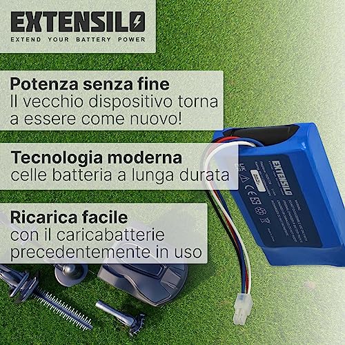 EXTENSILO batteria compatibile con Yard Force Amiro 350, 400, 350i, 400i tagliaerba, robot tagliaerba (2500mAh, 18V, Li-Ion)