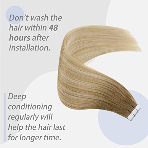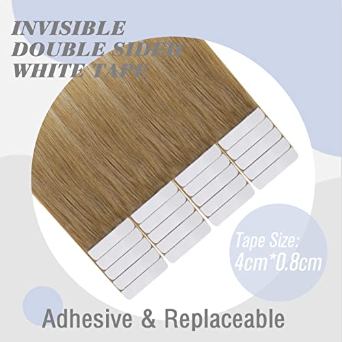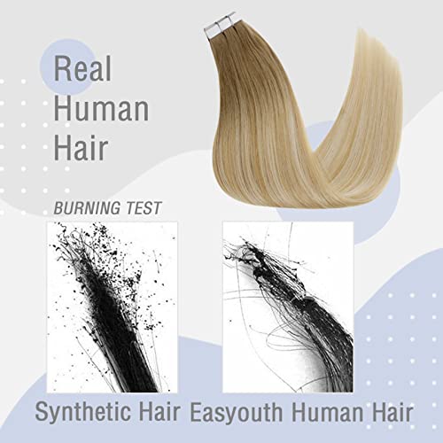 Extension Adesive Capelli Veri Biadesivo Balayage Lunga Colore Castano Medio Misto di Biondo Miele e Biondo Platino 50g 22pollici Balayage Invisible Naturali Seamless Lisci