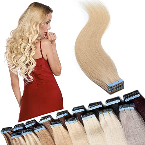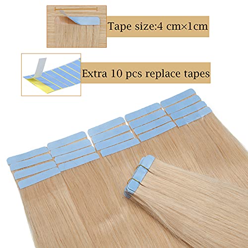 SEGO Extension Adesive Capelli Veri con Biadesivo 40 Fasce Biadesive Tape Extensions 40cm 100g 100% Remy Human Hair Senza Clip (#613 Biondo Chiarissimo)