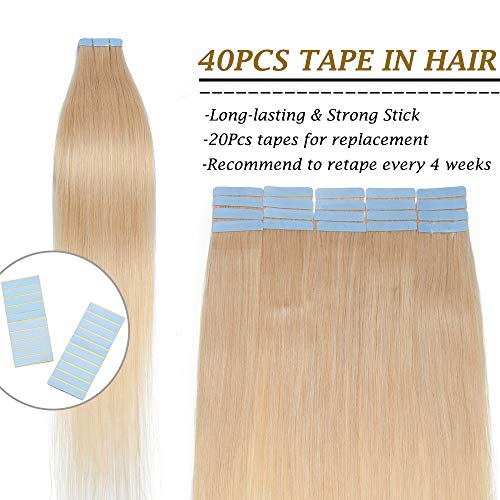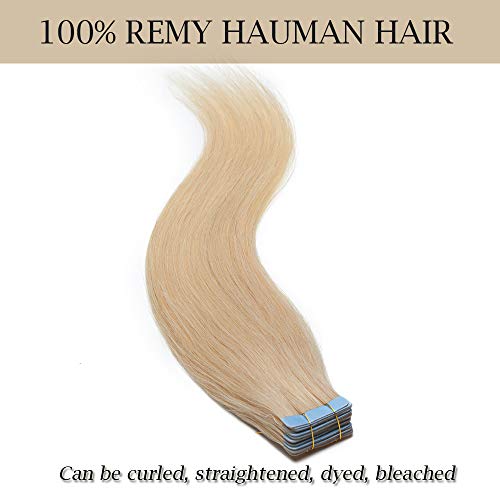 Tape in Hair Extension Adesive Capelli Veri Riutilizzabili- 50cm 100g 40 Fasce 613# Biondo Chiarissimo - 100% Remy Human Hair Capelli Naturali Umani Lisci
