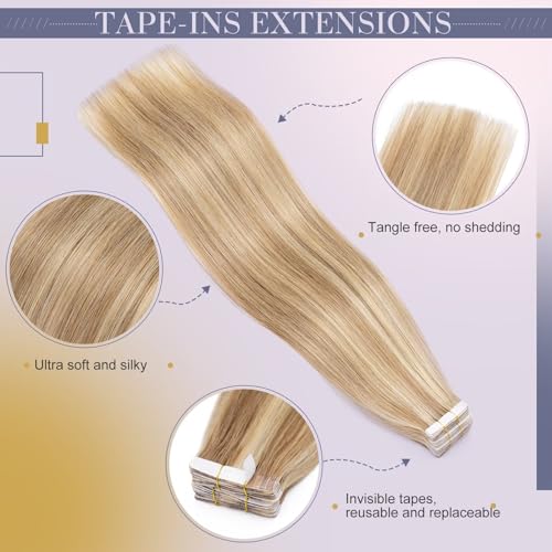 12"-24" Extension Capelli Veri Adesive Meches 40cm 2.5g/pcs 20 Fasce - 100% Remy Human Tape in Hair Extensions Lisci, #12/613 Marrone Chiaro con Biondo