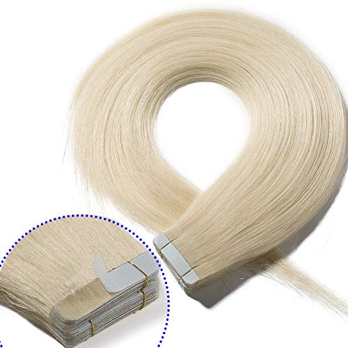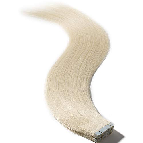 50cm Extension Capelli Veri Adesive Riutilizzabili - 20 Fasce 50g 60# Biondo Platino - 100% Remy Tape Hair Extension