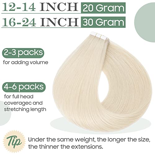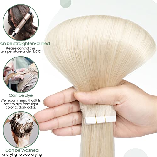 Extension Capelli Veri Biadesive Bleach White #70 Remy Human Hair 20 Fasce 35cm 20g Tape in Extensions con Adesive Invisibile Riutilizzabili Lisci Lunghi