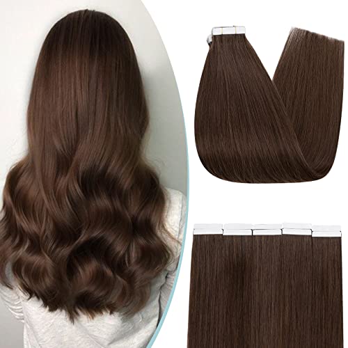 Extension Capelli Veri Biadesivo Adesive Invisibile Naturale - 50cm 25g 10 Fasce - 100% Remy Human Hair Umani Lisci, 4 Marrone Cioccolato