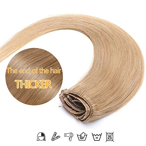 SEGO Extension Clip Capelli Veri Biondi Piene sulle Punte 100% Remy Human Hair Naturali 8 Fasce 45cm 80g per Capelli Lisci #27 Biondo Scuro