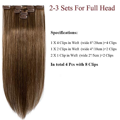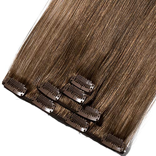 SEGO Extension Capelli Veri Clip Castani 100% Remy Human Hair Naturali 4 Fasce con 8 Clips Extensions 25cm #6 Castano Chiaro 40g
