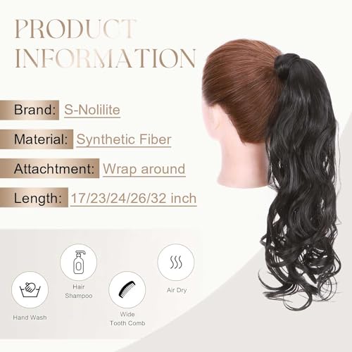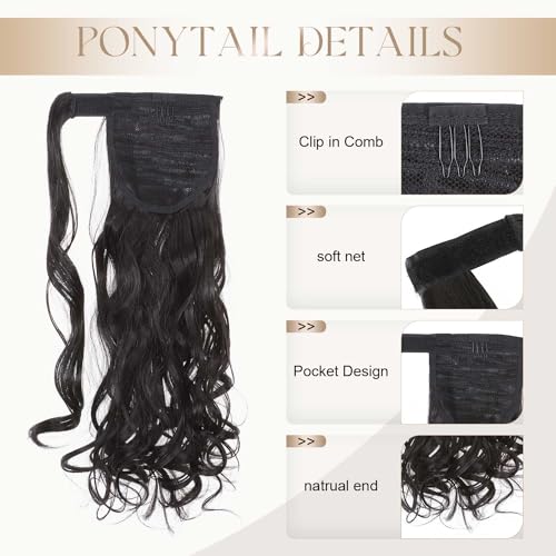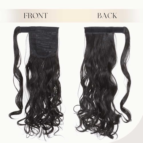 Extension Capelli Veri Coda di Cavallo Arrotolare Ponytail Parrucchino Ombre Hair Extensions 43cm Riccio - Nero naturale