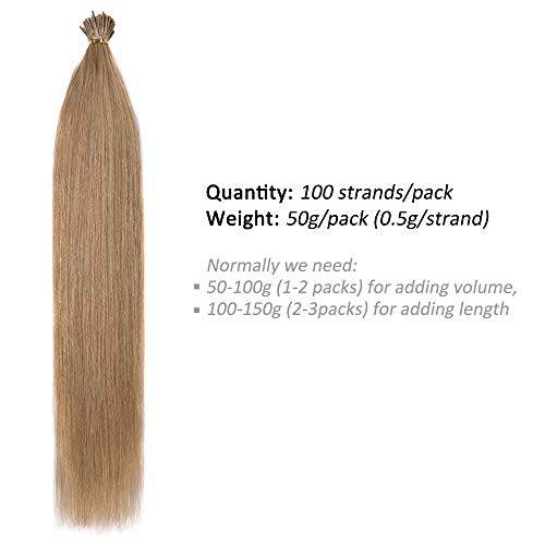 Extension Capelli Veri Cheratina 100 Ciocche 0.5g/ciocca I Tip Remy Human Hair Pre Bonded Keratine Lisci Lunghi Naturali Umani (55cm 27 Biondo Scuro)