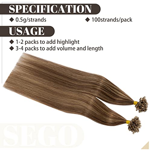 SEGO Extension Capelli Veri Cheratina 100 Ciocche 40cm 100% Remy Human Hair Indiani Naturali Invisibili 50g Keratin Hair Extensions senza Clip #4P27 Marrone Medio mix Biondo Scuro
