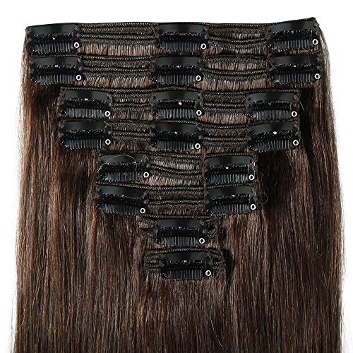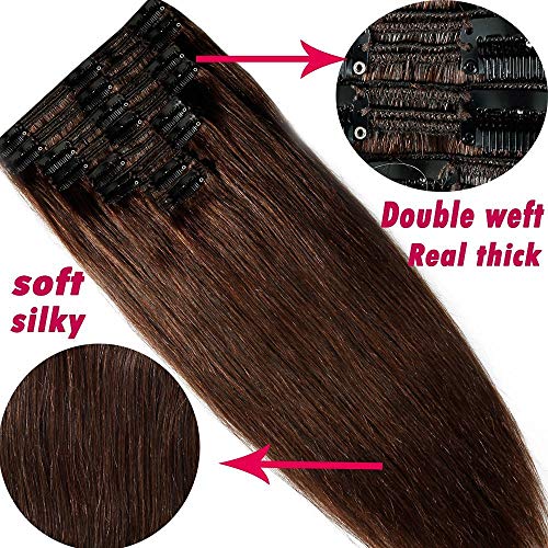 35cm Extension Clip Capelli Veri Doppia Tessitura Double Volume Lunga 14" Pesa 120g #2 Marrone Scuro 8 Fasce Full Head 100% Remy Human Hair Estensioni Umani