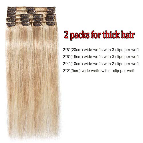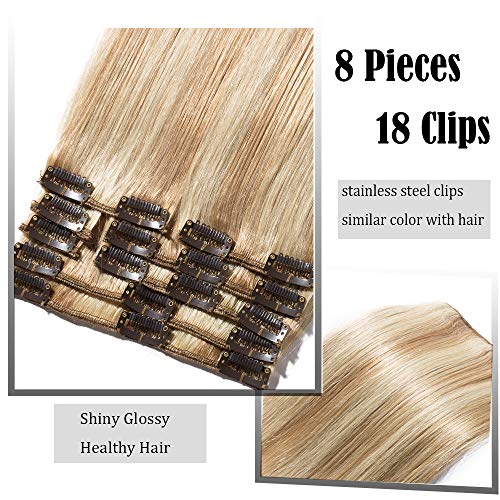 40cm Extension Capelli Veri Clip 8 Fasce 18 Clips 100% Remy Human Hair Testa Intera #18/#613 Beige Sabbia Biondo + Bleach Blonde