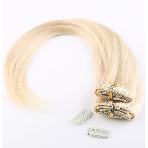 Lunghezza di capelli veri: 16" circa 40cm, Peso: 65g, colore: #60 Biondo Platino