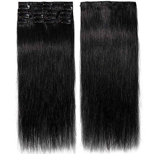 Extension Clip Capelli Veri 8 Fasce Remy Human Hair Extensions Clip Lisci Lunga 24 pollici 60cm Pesa 80grammi, #1 Jet Nero