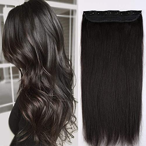 Extension Capelli Veri Clip Fascia Unica Folta Remy Human Hair One Piece 1 Ciocca Naturali Umani Lisci - Lunag 40cm Pesa 80g 1B Nero Naturale
