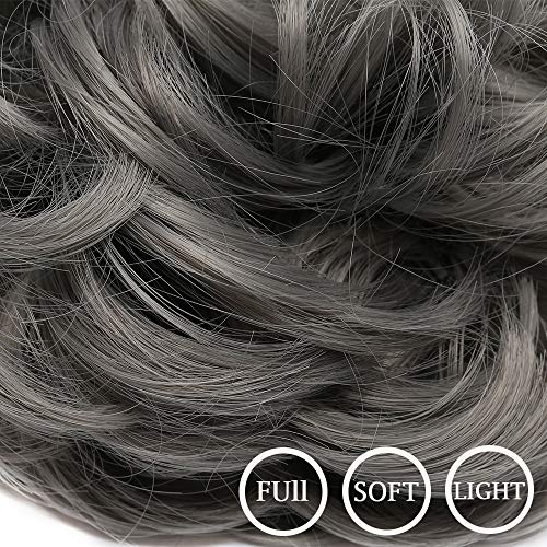 SEGO Extension Capelli Finti Ricci Chignon Elastico Hair Magic Bun Updo Coda di Cavallo Accessori Capelli Crocchia 40g #Grigio Scuro