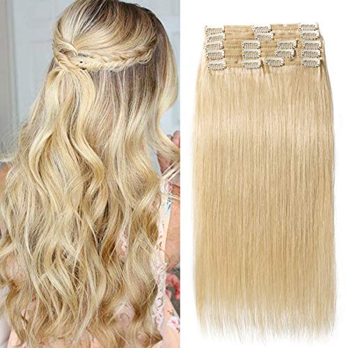 Extension Capelli Veri Clip Folti Double Weft Volumizzante 8 Fasce Remy Human Hair Testa Piena Naturali Lisci Umani Lunghi (55cm 160g 613 Biondo Chiarissimo)