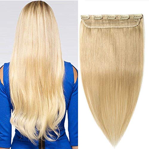 Clip Extension Capelli Veri Remy 100% Remy Human Hair 1 Fascia 5 Clips Larga 25cm Lunga 45cm 613# Biondo Chiarissimo