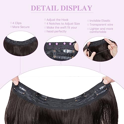 Extension Capelli Filo Invisibile, MY-LADY Extensions Filo Invisibile Mossi Sintetici Posticci per Capelli Lunga Ondulati Ricci Extension Capelli Extension con 4 Clips per Donna 50 cm Marrone scuro
