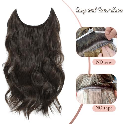 Extension per capelli con filo invisibile, capelli sintetici ondulati naturali, con filo trasparente, misura regolabile, 2 clip di sicurezza, fascia per capelli lunghi e ricci, capelli segreti per