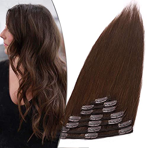 SEGO Extension Capelli Veri Clip Lisci 100% Remy Human Hair Umani 8 Ciocche Lunghe 33cm Pesa 80g Full Head #4 Marrone Medio