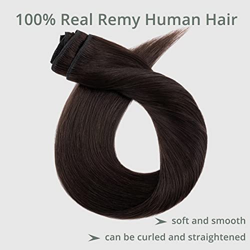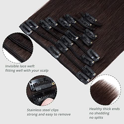 TESS 60 cm Extension Capelli Veri Clip #2 Marrone Scuro 8pcs 18 clips 120g Extension Clip Capelli Veri Remy Human Hair con Clip Riutilizzabile Invisibile Lisci