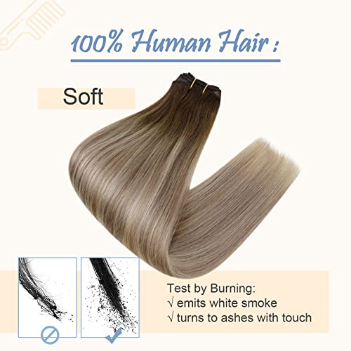 Extension Capelli Veri Matassa Balayage Colore Marrone Scuro Mix Castano Cenere e Biondo Medio Weft Human Hair Extension Tessitura 16 pollici 100g
