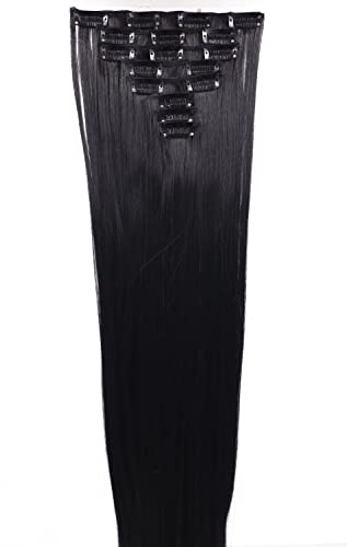 60cm Extension Capelli Clip Mossi Ondulati Lunghi 8 Fasce Testa Piena Set Estensioni per Capelli Straight Sintetici Naturali 8PCS (Nero)
