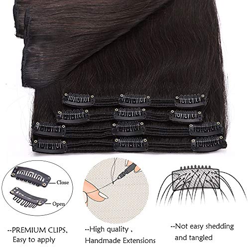 SEGO Extension Capelli Veri Clip Nero Naturale Lisci Double Weft Volumizzante 50cm 100% Remy Human Hair Umani 8 Fasce Lunghi 150g Full Head Tessitura #1B