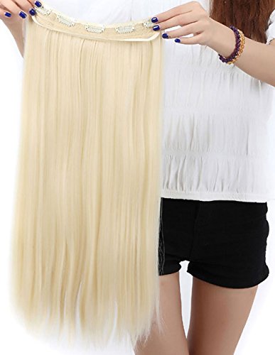 Extension dei capelli, 1 pezzi con 5 clips, 3/4 testa piena, colore: bionda candeggina, dimensioni: 58 cm-dritto