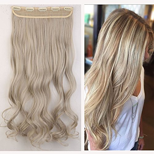 1 extension per capelli con 5 clip, ricci, colore misto, 61/66 cm