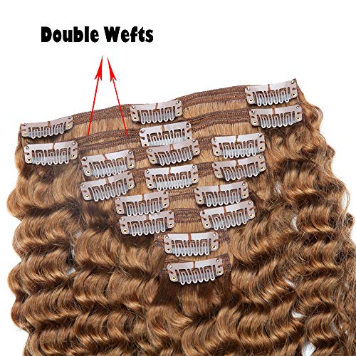 35cm Extension Clip Capelli Veri Ricci Kinky Curly Africano Tessitura Matassa 8PCS 100% Remy Human Hair Umani Pesa 110g, 30 Marrone Medio