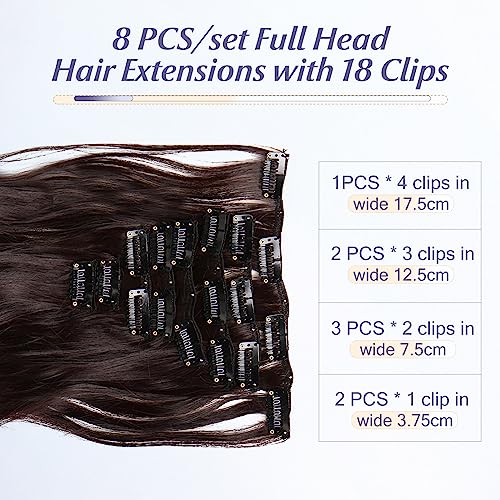 Extension Clip Capelli Ricci Mossi 8 Fasce Ondulate 140g (60cm) Testa Piena Hair Extensions Sintetiche # Castano Scuro/Rosso Scuro
