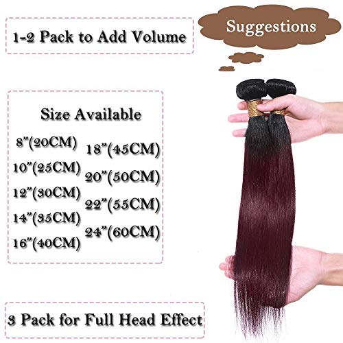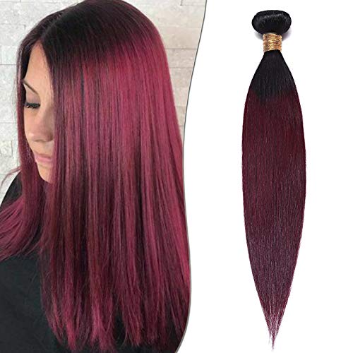 SEGO Extension Capelli Veri Tessitura Matassa Virgin Human Hair Brasiliani Shatush 100g Capelli Lisci per Cucire 45cm #1BT99 Nero Naturale/Rosso Borgogna