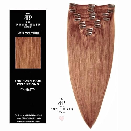THE POSH HAIR. Remy, extension per capelli veri veri capelli umani Remy, con clip, 45,7 cm (100 g) 350 rosso rame chiaro, con clip, trama standard, doppio disegnato