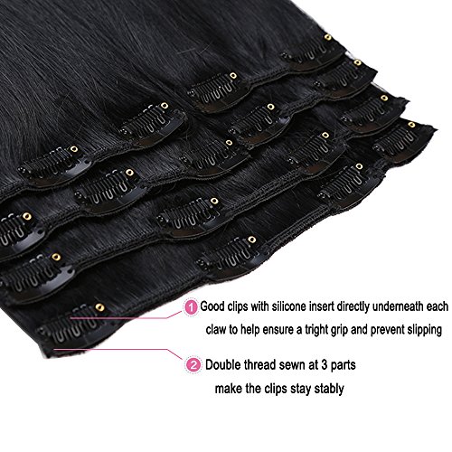 Extension di capelli umani a trama standard, con attacco a clip, 8 pezzi, lunghezza da 25,4 a 61 cm