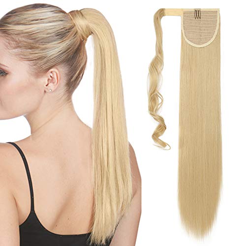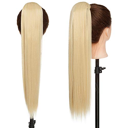 SEGO 58cm 23" Extension Clip Coda di Cavallo Capelli Sintetici Lunghi Lisci Ponytail Extension - Biondo mix Biondo Decolorante