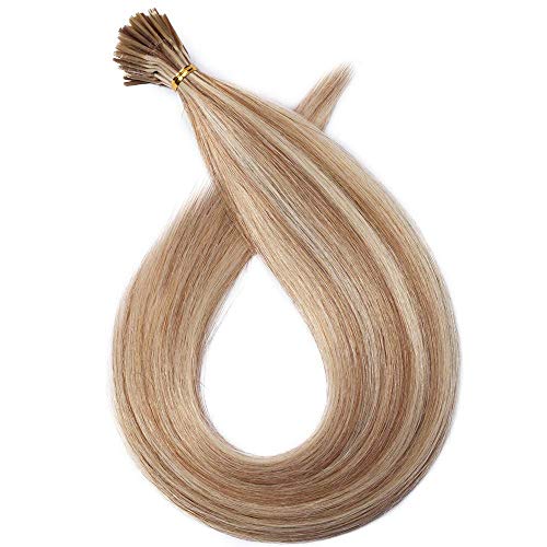 SEGO Extension Cheratina Capelli Veri 100 Ciocche 50g/Pack - 100% Remy Human Hair Balayage Lisci Naturali I-Tip Extensions 55cm #12P613 Marrone Oro mix Biondo Chiarissimo
