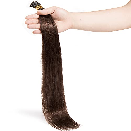 SEGO Extension Cheratina Capelli Veri 100 Ciocche 50g I-Tip senza Clip 100% Remy Human Hair Indiani 0.5g/fascia (40cm #4 Marrone Medio)