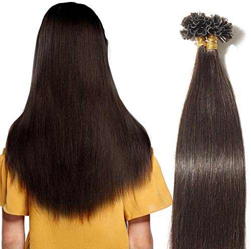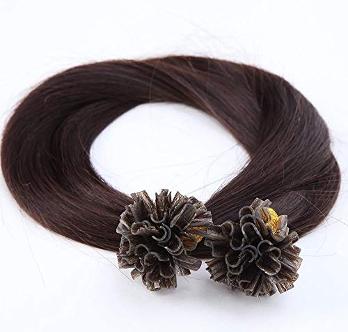 Extension Cheratina Capelli Veri 1 Grammo per Ciocca 50g/pack U Tip Remy Hair Umani Naturali Lisci (55cm #2 Marrone Scuro)