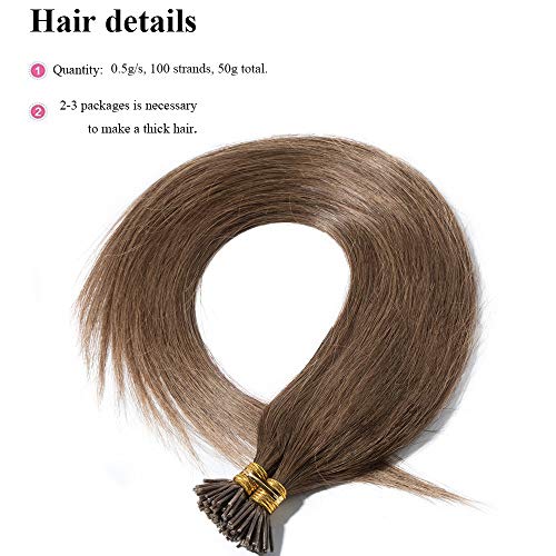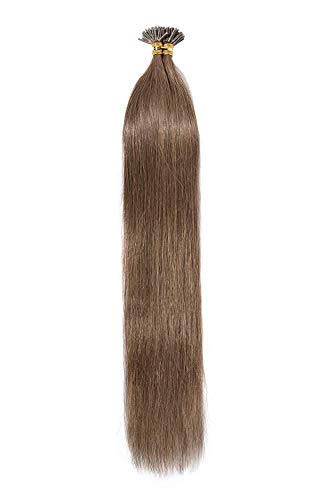 SEGO Extension con Cheratina Capelli Veri Indiani 100 Ciocche Remy Human Hair Lisci 50cm I-Tip Extensions 50g #6 Castano Chiaro