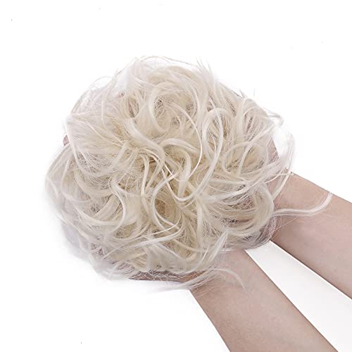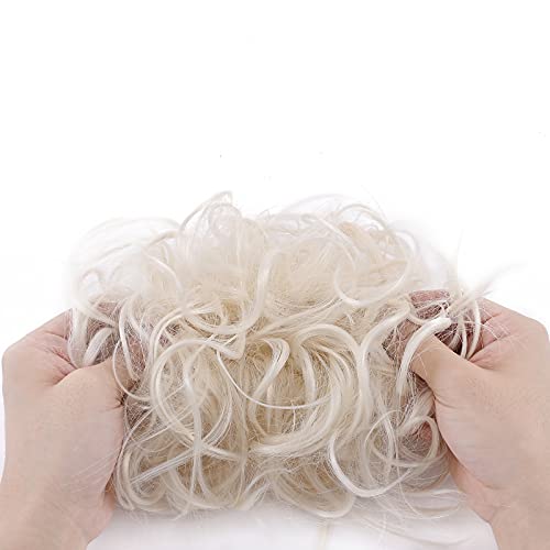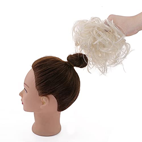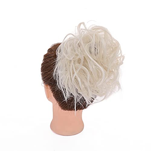 Extension Chignon Ponytail Estensione dei Capelli Capelli Posticci Elastici Ricci Coda di Cavallo Ciambella per Donna Bionda bianca