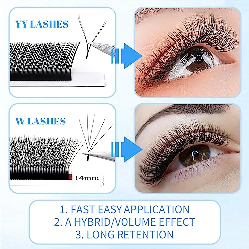Ciglia Extension W forma: Gemerry individuali ciglia W forma intrecciate a croce da 3 ciglia singole (premade 3D). Le ciglia 3D rendono le ciglia più spesse, l'innesto è più facile, ottieni istantaneamente un cluster 3D.