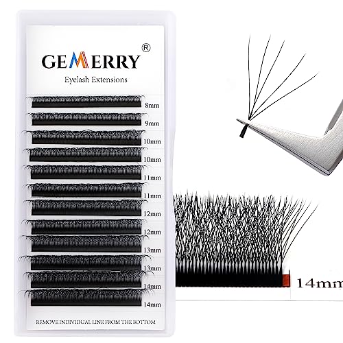 Dettagli prodotto: Gemerry extension ciglia 5D premade a forma di W, D Curvatura 0,07 mm, lunghezza mix 8-14mm x 12 file, 120 ciglia a grappolo ogni fila, volume mega, rapporto qualità-prezzo