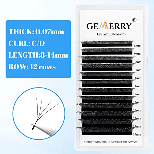 Dettagli prodotto: Gemerry extension ciglia 4D premade a forma di W, D Curvatura 0,07 mm, lunghezza 10mm x 12 file, 120 ciglia a grappolo ogni fila, volume mega, rapporto qualità-prezzo