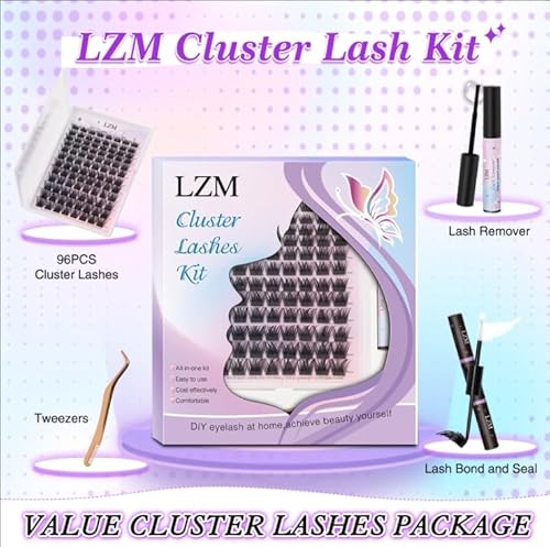 Kit Extension Ciglia, LZM Ciglia a Grappolo mix 8-16 mm, Ciglia Finte Individuali con Colla per Ciglia e Sigillante, Pinzette, Rimozione Colla, Fai da Te per la Casa(D Crul, Y012)
