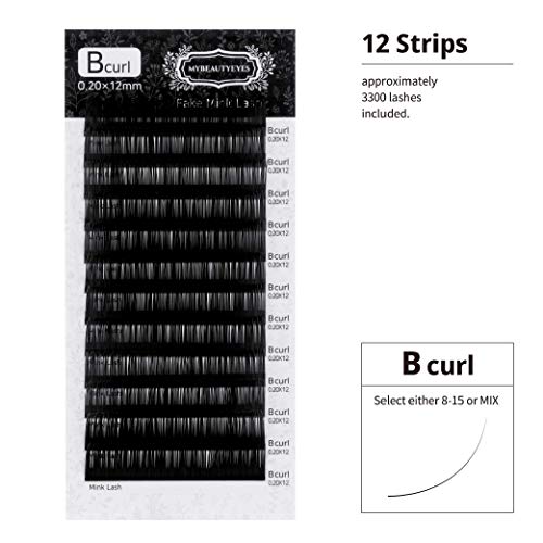 Extension per ciglia piatte, accessorio per extension per ciglia, per uso da salone di parrucchiere, B Curl, spessore 0,07 - 0,20 mm e lunghezza di 8 - 15 mm MIX (0.20mm, 13mm)