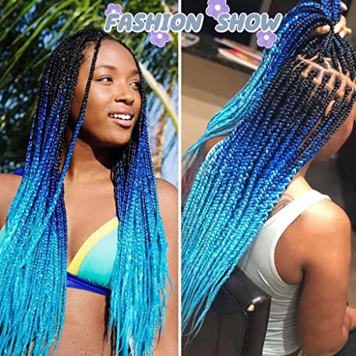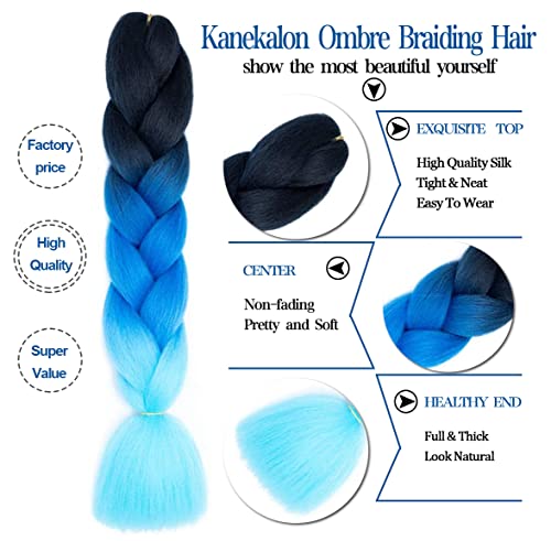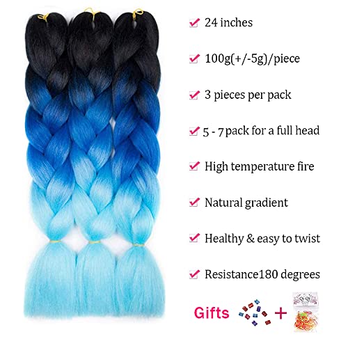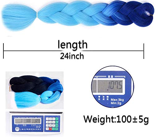 Extension enormi intrecciati, Treccie Extension 24inch3 pezzi, di estensione dei capelli intrecciati Jumbo sintetici Ombre Trecce di scatola africane ad alta temperatura (Nero- Blu scuro- Azzurro)