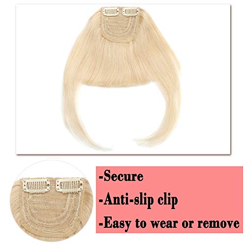 Extension Frangia Clip Capelli Veri Frangetta con Tempie - 100% Remy Human Hair Bangs Estensioni Corti Lisci Folti Invisibile Naturali Umani, 613 Biondo