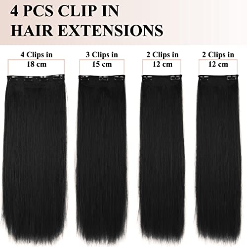 Extension con clip in extension, lisce, 50 cm, set da 4 pezzi, 190 g, nero come capelli veri, clip in estensione, capelli sintetici, treccia per donna dritta, nero 051A